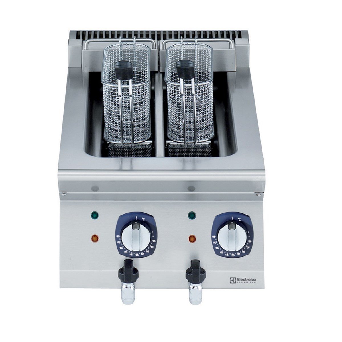 Incoloy kaplamalı (nikel-krom-titanyum alaşımlı) rezistanslar içeriye yerleştirilmiştir, eğer temizlemek isterseniz rahatça havaya kaldırıp temizleyebilirsiniz. Yağ sıcaklı termostatla 185 dereceye kadar ayarlanabilmektedir. Electrolux Elektrikli Fritözün bütün ünitelerinde standart olarak aşırı ısınmaya karşı koruma termostatı bulunmaktadır, aşırı ısınmaya bağlı sorunların oluşmasına izin vermez. Yağ hazneleri önünde bulunan musluktan boşaltılır. Electrolux Elektrikli Fritöz suya karşı dayanıklıdır. Kolay temizlenebilir özelliği sayesinde sizlere hız kazandırır. Mükemmel bir fritözdür, satın alıp sorunsuz bir biçimde kullanmaya başlayabilirsiniz. Tam da siz değerli müşterilerimizin beğeneceği türden bir fritöz, sorunsuz ve uzun ömürlü. Tek parça, preslenmiş, 1.5 mm kalınlığında üst tabla paslanmaz çelikten üretilmiştir, bu fritöz profesyonellerin tercihidir. Bir kez satın aldığınızda sizlere uzun yıllar, ilk aldığınız şekilde hizmet edebilecek bir üründür. Electrolux Elektrikli Fritöz gibisini bulmak çok zor hem de bu fiyata! Daha fazla geç kalmayın, sağladığı avantajlarla birlikte sizleri ve mutfağınızı bir adım öne geçirecektir. Ünitenin 90 derecelik kenarları diğer ünitelerle açıklık kalmadan birleşmelerini sağlar ve aralarında pislik toplanmasını engelleyerek, sizleri bir zahmetten daha kurtarır. Hem kolay temizlenebilir özellikte hem de kolay pislenmiyor. Electrolux Elektrikli Fritöz 2x5 Lt 40x73x25 Fiyatı nın uygunluğunu fark etmişsinizdir, bu fiyat kaçmaz! Hemen siz de Electrolux Elektrikli Fritöz sahibi olun. İçerisinde bulunan haznenin iç köşeleri daha kolay temizlenebilmesi için yuvarlanmıştır. Electrolux Elektrikli Fritöz 2x5 Lt 40x73x25